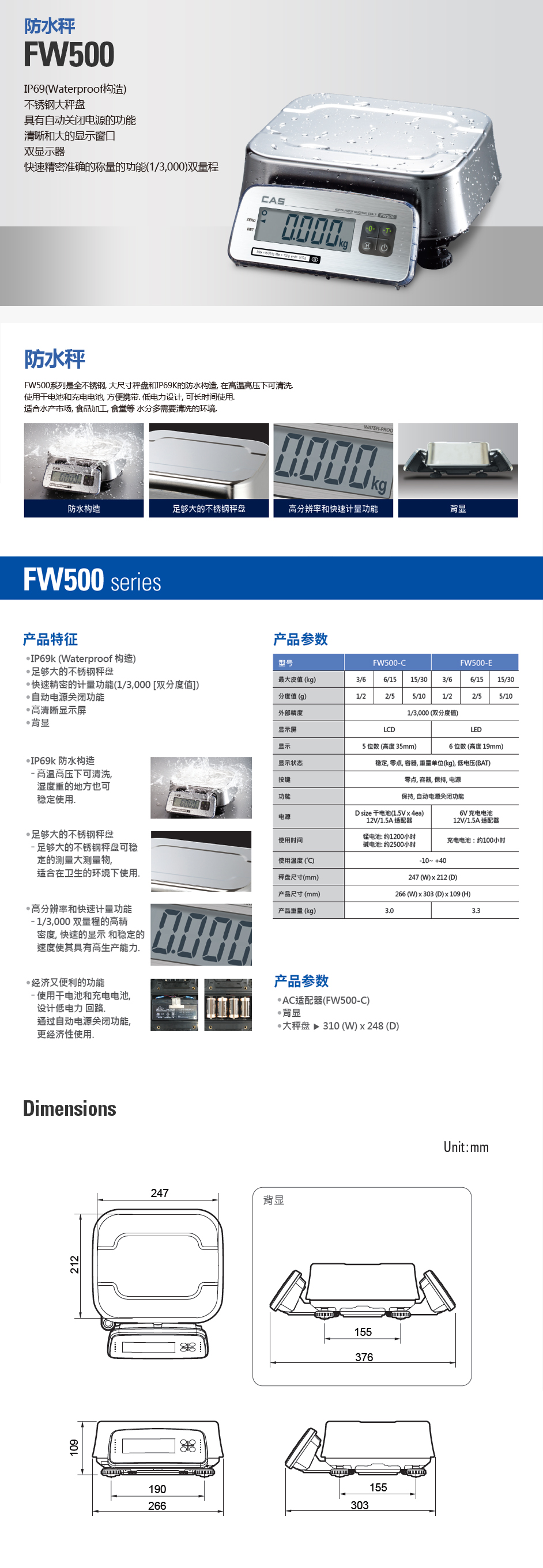 FW500系列配有大型不銹鋼稱重板,具有IP69k防水結(jié)構(gòu),可進(jìn)行高溫高壓洗滌。 <br>