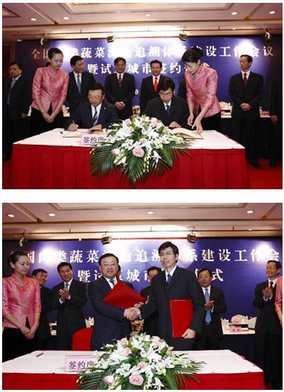 上面的照片是,中國十大城市 上海 杭州 蘇州 南京 大連 等城市的市長以及副市長級和商務(wù)部與農(nóng)產(chǎn)品安全管理協(xié)會,簽署協(xié)議的場景照片場景
